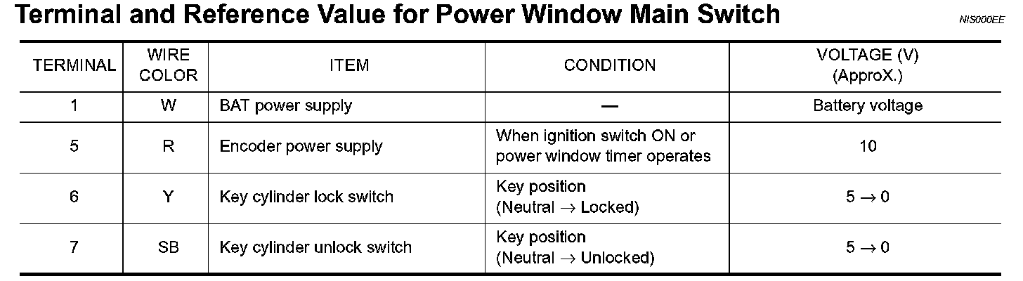 Terminal And Reference Value For Power Window Main Switch Part 1: