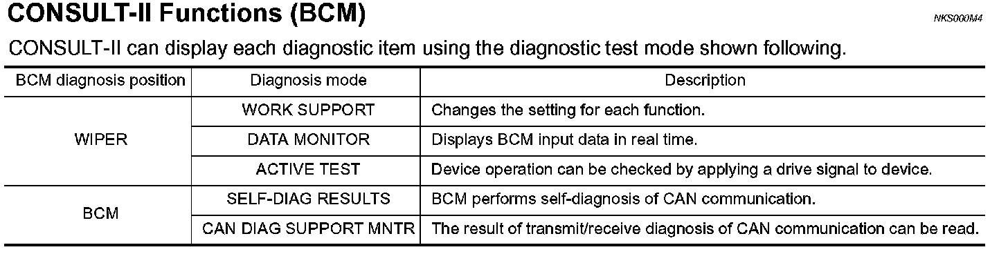CONSULT-II Function (BCM)