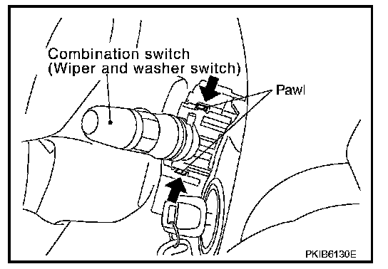 Removal and Installation of Front Wiper and Washer Switch1. Remove steering column cover. Refer to "INSTRUMENT PANEL ASSEMBLY".