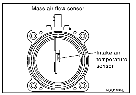 The mass air flow sensor is placed in the stream of intake air. It measures the intake flow rate by measuring a part of the entire intake flow. The mass air flow sensor controls the temperature of the hot wire is to a certain amount. The heat generated by the hot wire is reduced as the intake air flows around it. The more air, the greater the heat loss. Therefore, the electric current supplied to hot wire is changed to maintain the temperature of the hot wire as air flow increases. The ECM detects the air flow by means of this current change.