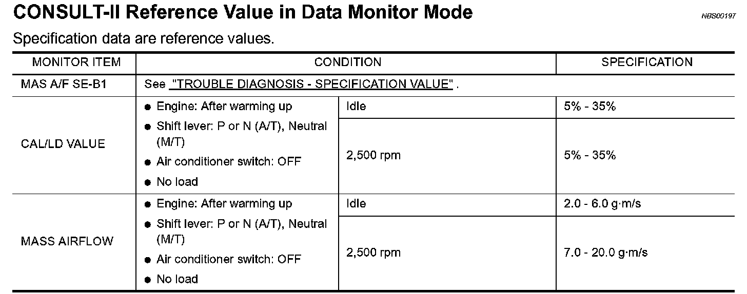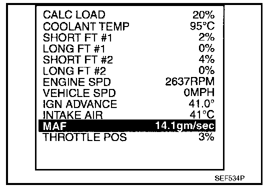 4. Check for linear mass air flow sensor signal value rise in response to increases to about 4,000 rpm in engine speed.