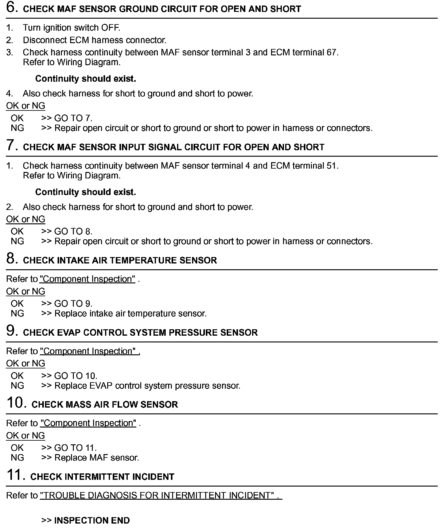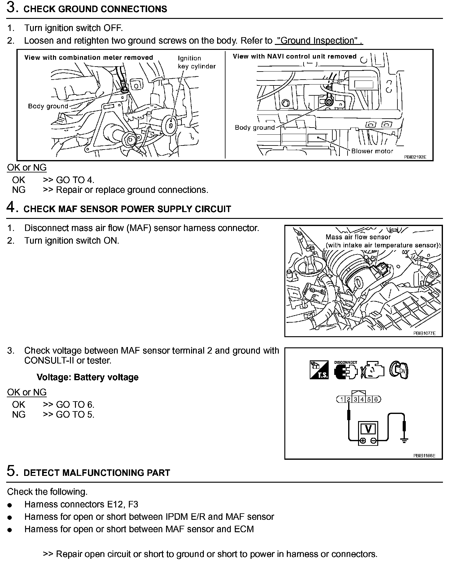 7. Disconnect mass air flow sensor harness connector and reconnect it again.