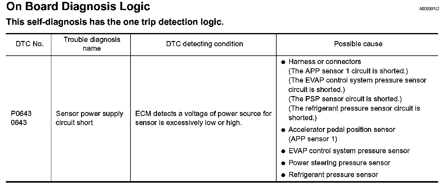 DTC P0643 SENSOR POWER SUPPLYOn Board Diagnosis Logic