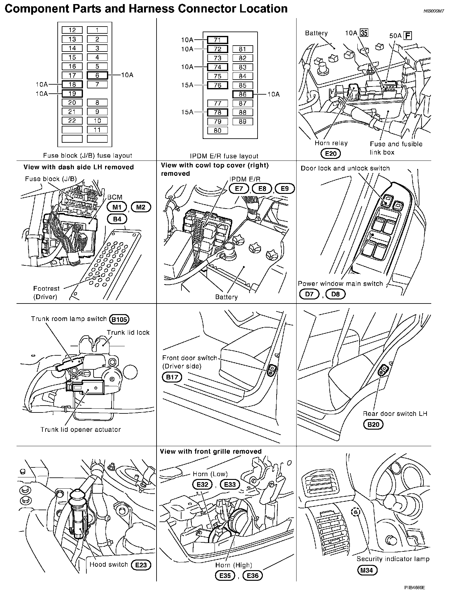 Component Parts And Harness Connector Location: