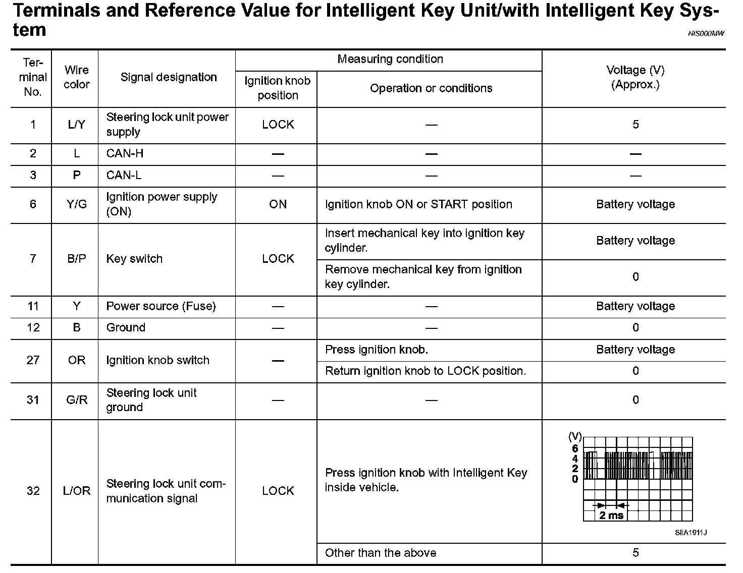 Terminals And Reference Value For Intelligent Key Unit / With Intelligent Key System: