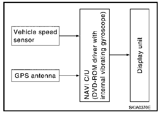 - Signals are received from the gyro, the vehicle speed sensor, and the GPS antenna. Vehicle location is determined by combining these data with the data contained in the DVD-ROM map. Locational information is shown on LCD (liquid crystal display) screen.