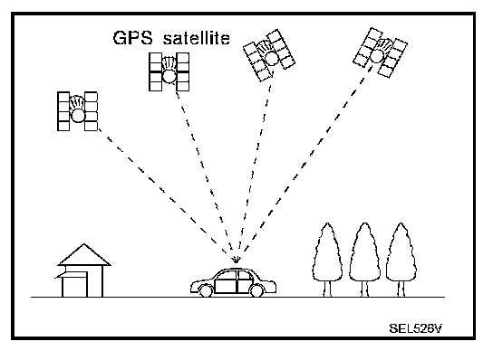 - Position detection is not possible when the vehicle is in an area where radio waves from the GPS satellite do not reach, such as in a tunnel, parking lot in a building, and under an elevated highway. Radio waves from the GPS satellites may not be received when some object is located over the GPS antenna.