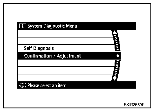 Confirmation/Adjustment Mode1. Start the diagnosis function, and then select "Confirmation/Adjustment".