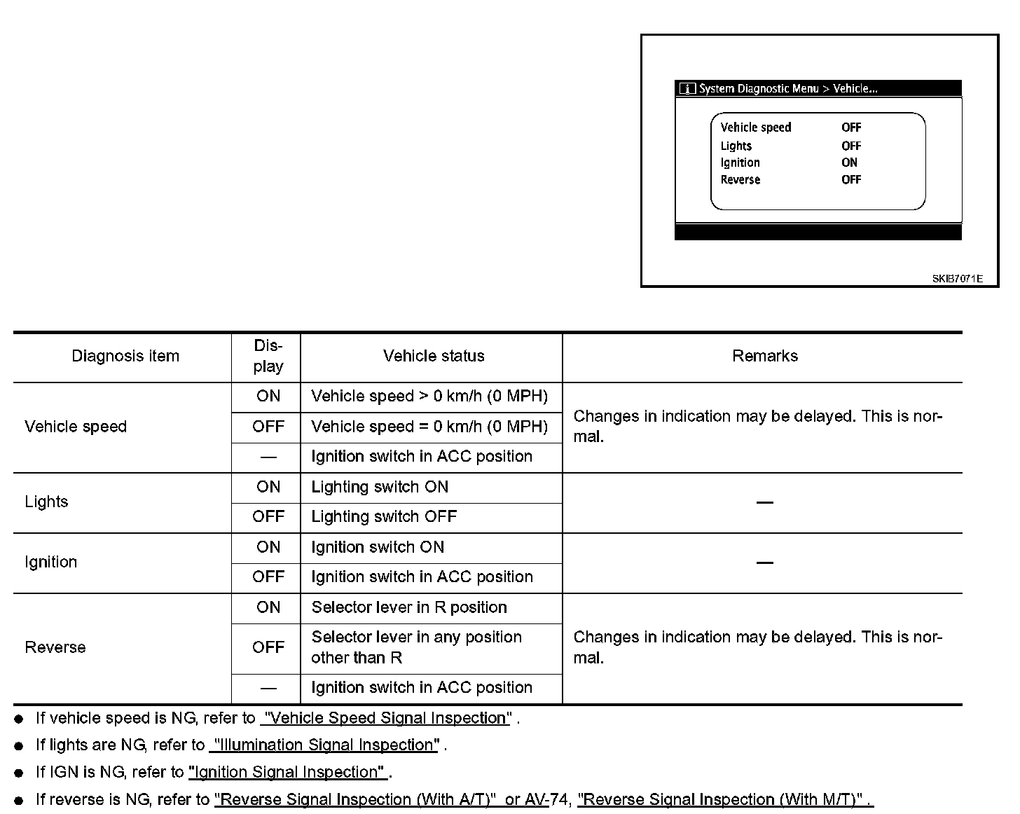 If an error occurred before the ignition switch was turned ON, and does not occur again until "Self-diagnosis" is completed, the diagnosis result is judged normal. Therefore, errors in the past which cannot be found by "Self-diagnosis", must be found by checking the "Error record".