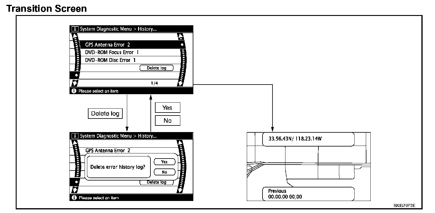 The connection history of unit and error history that is recorded in NAVI control unit can be erased, the connection history of the removed unit can be cleared.