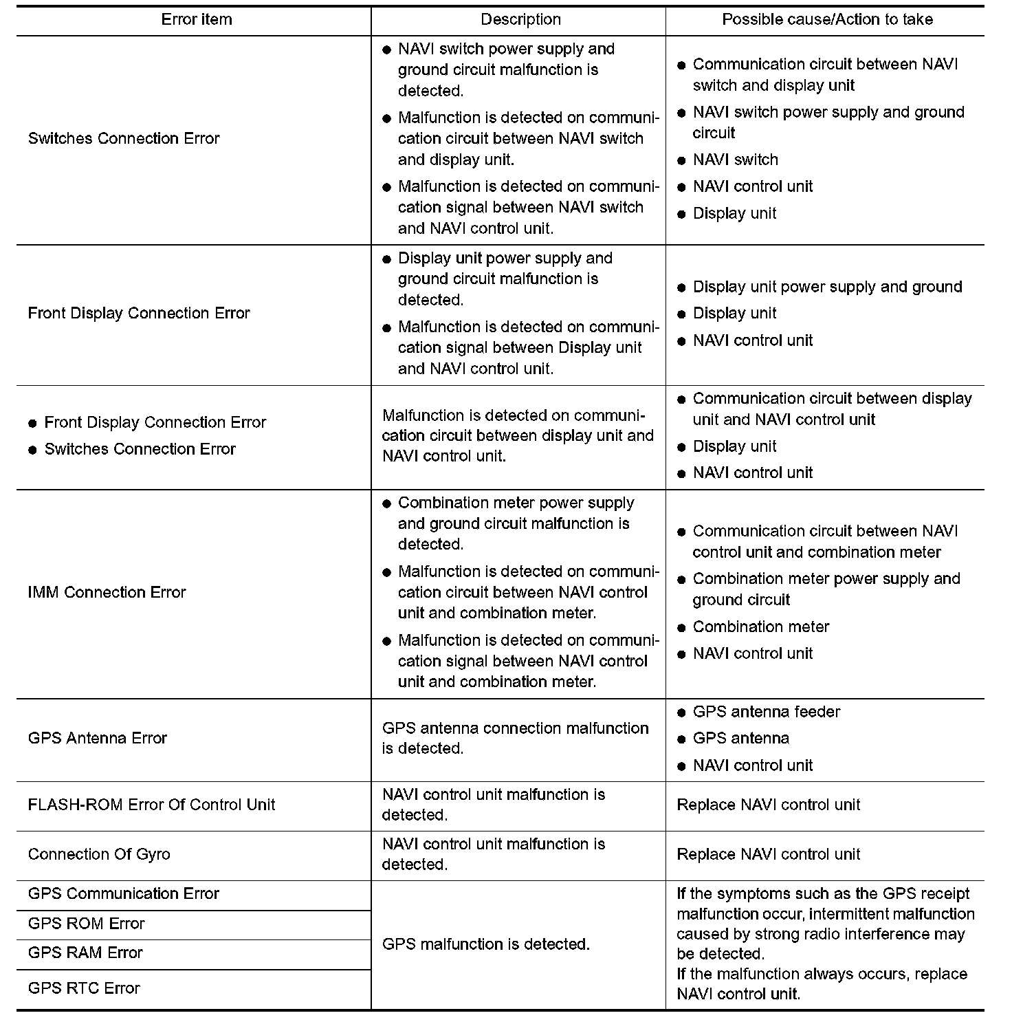 - If there is a malfunction with the GPS antenna circuit board in the NAVI control unit, the correct date of occurrence may not be displayed.