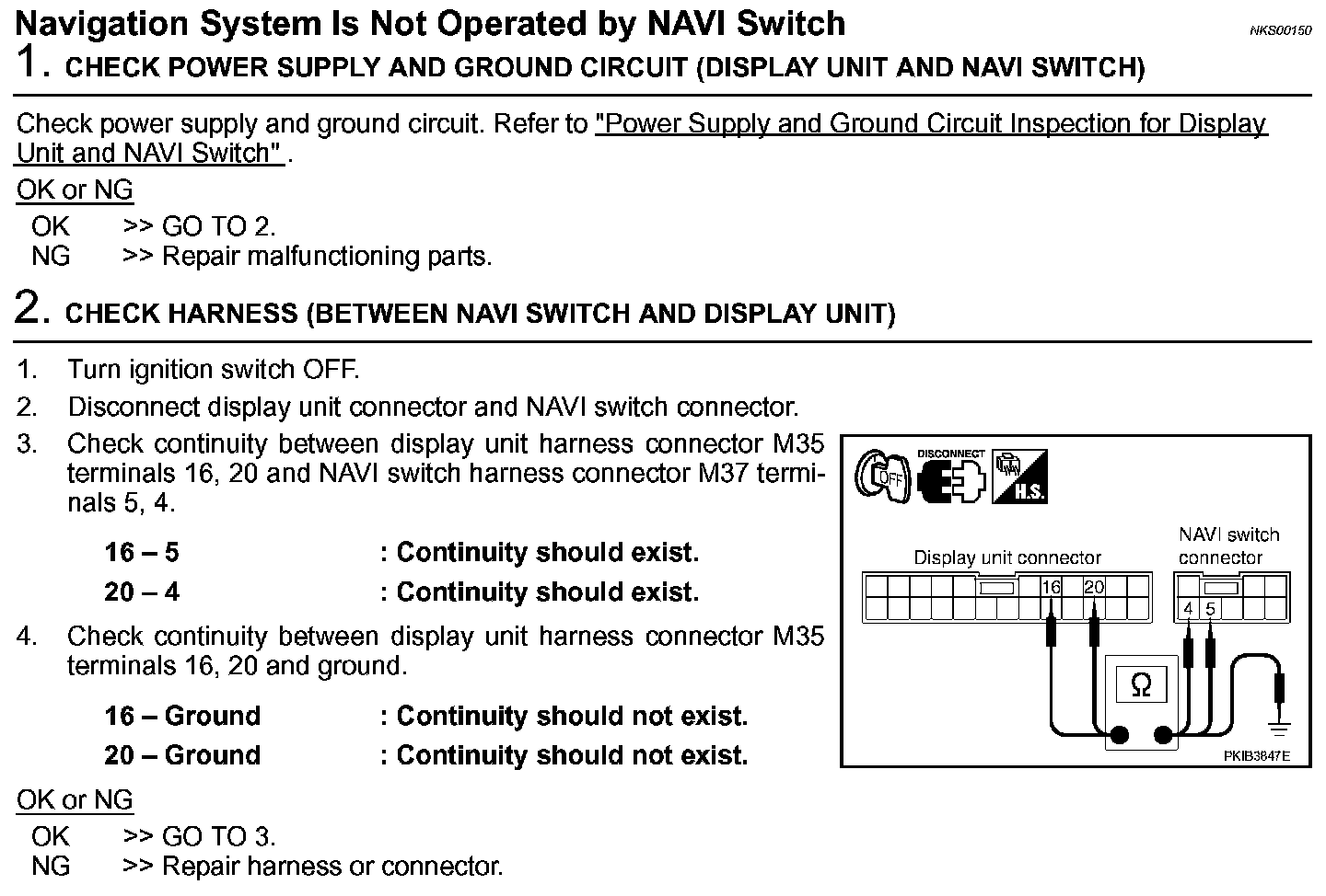 Navigation System Is Not Operated By NAVI Switch (Steps 1 - 2):