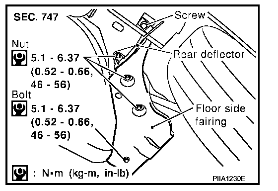 Remove bolt, nut and screws of floor side fairing.