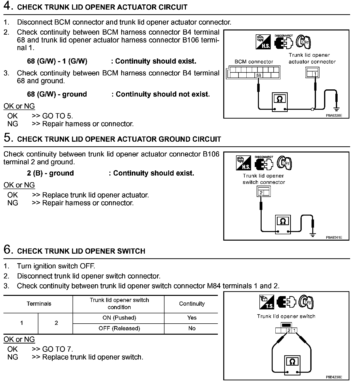 Trunk Does Not Open With Trunk LID Opener Switch / With Intelligent Key (Steps 4 - 6):