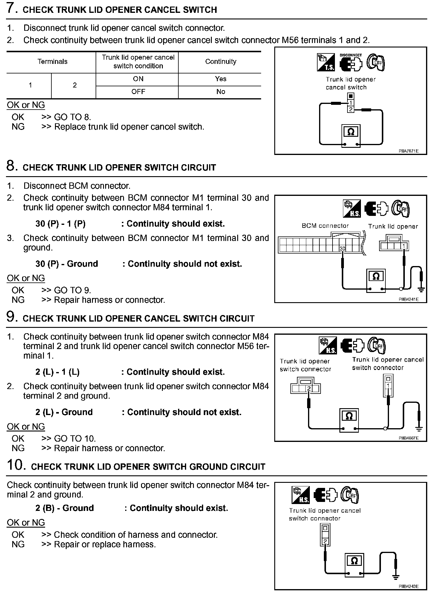 Trunk Does Not Open With Trunk LID Opener Switch / With Intelligent Key (Steps 7 - 10):