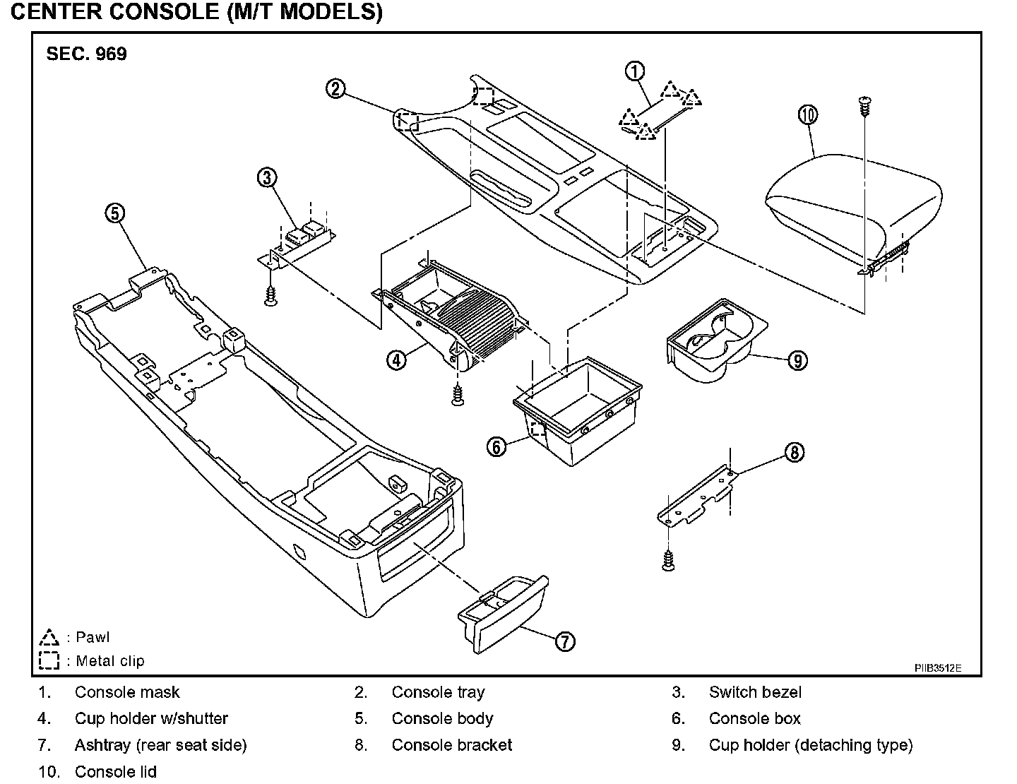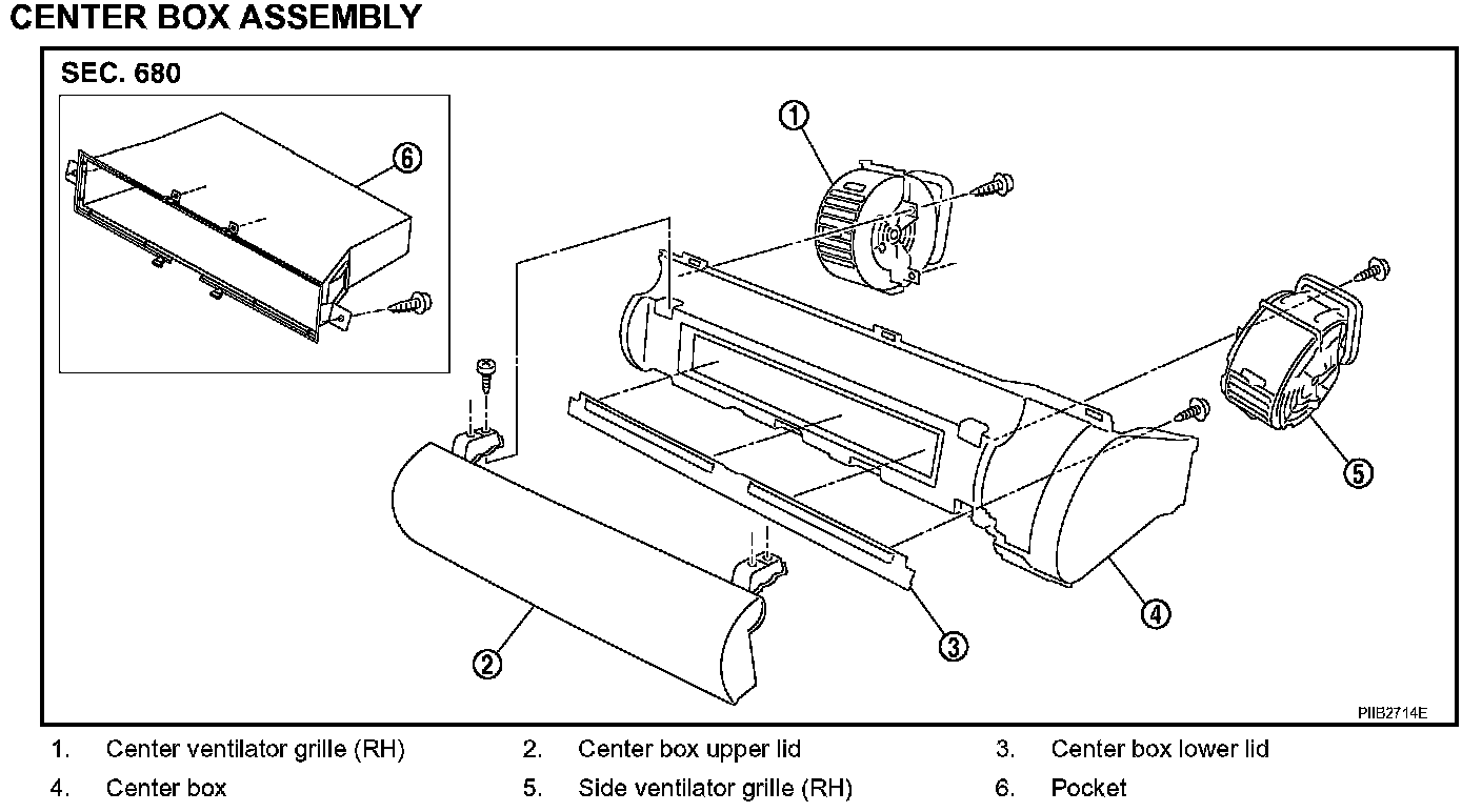 1. Remove screws and pawls, and then remove side ventilator grille (RH) and center ventilator grille.