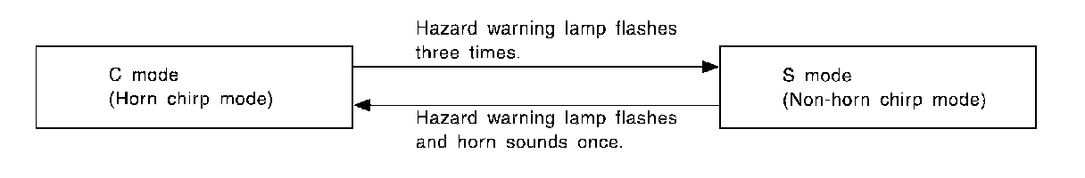 The hazard and horn reminder has a horn chirp mode (C mode) and a non-horn chirp mode (S mode).