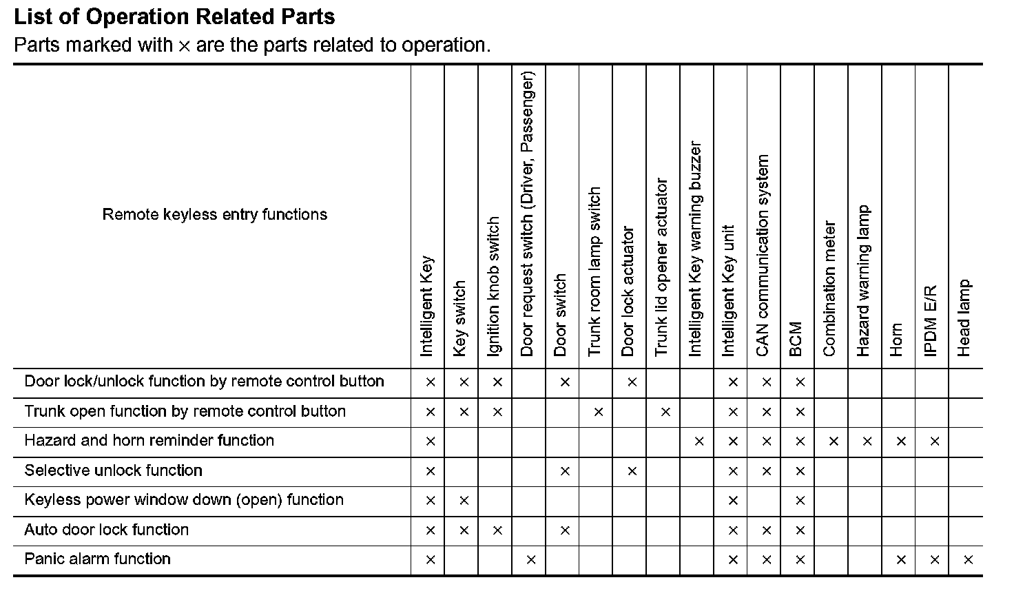 - Intelligent Key unit sends the door lock/unlock request signal to BCM via CAN communication line.