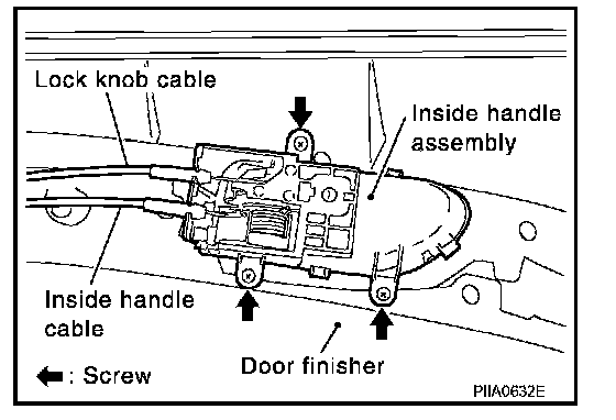 4. Disconnect the inside handle cable and lock knob cable from the back side of the front door finisher.