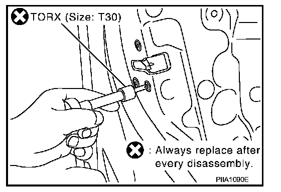 3. Remove the front door window and front door module assembly. Refer to "Removal and Installation".
