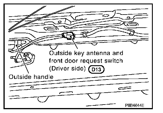 8. Disconnect outside key antenna and front door request switch harness connector. (with Intelligent Key system)