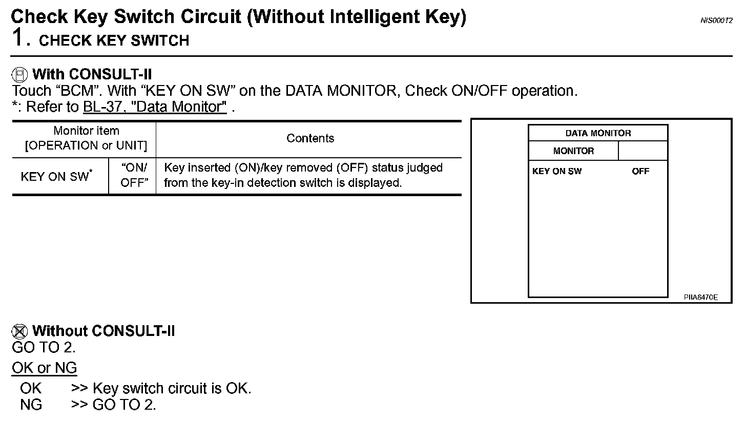 Check Key Switch Circuit (Without Intelligent Key) (Step 1):