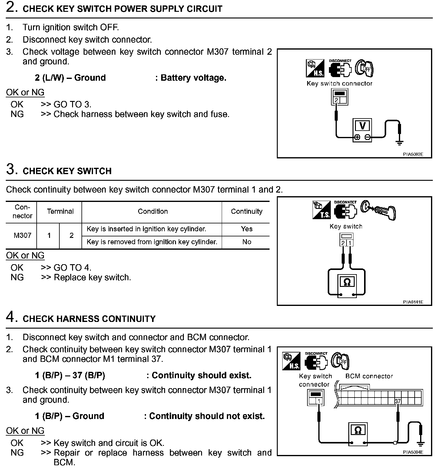 Check Key Switch Circuit (Without Intelligent Key) (Steps 2 - 4):