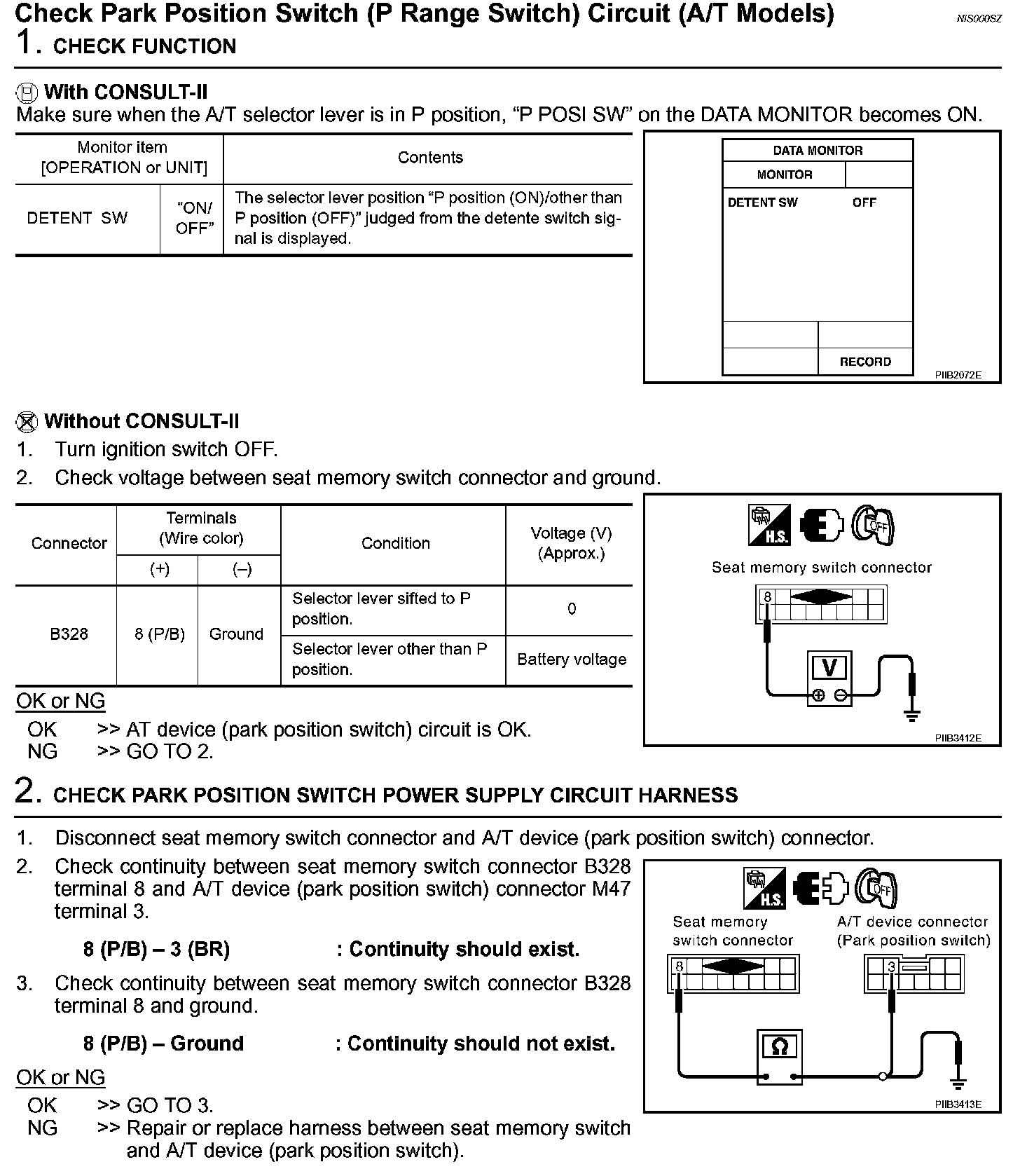 Check Park Position Switch (P Range Switch) Circuit (A / T Models) (Steps 1 - 2):