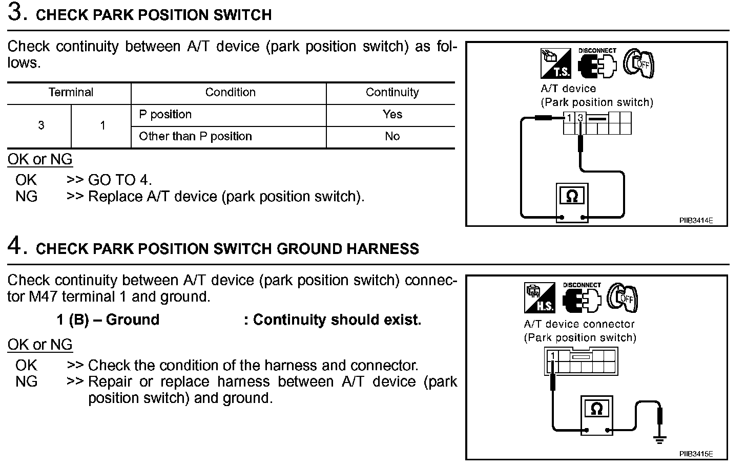 Check Park Position Switch (P Range Switch) Circuit (A / T Models) (Steps 3 - 4):