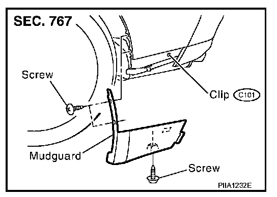 Pull rear mudguard to out side of vehicle and disconnect clip and remove mudguard.