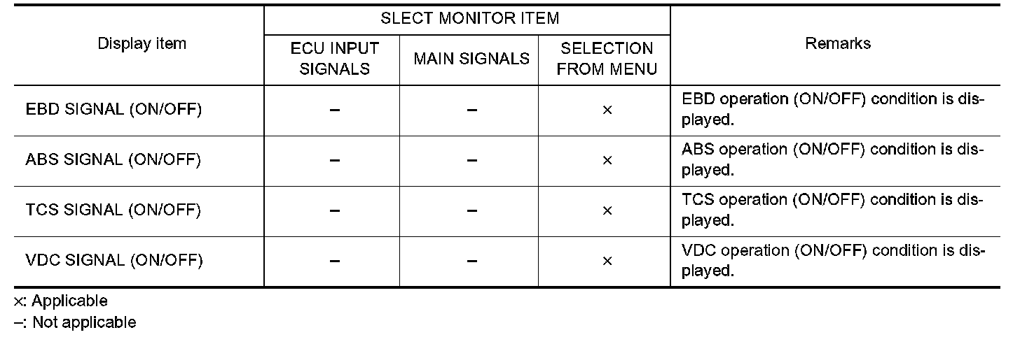 3. Return to the "SELECT MONITOR ITEM" screen, and touch "ECU INPUT SIGNALS", "MAIN SIGNALS" or "SELECTION FROM MENU". Refer to the following information.