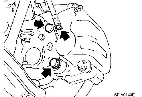 4. Remove union bolt, and then remove brake hose from caliper assembly.