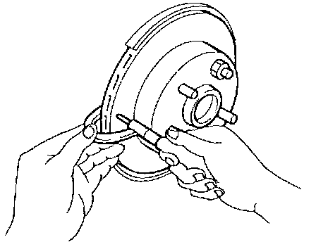 3. If runout is outside limit, find the minimum runout point by shifting the mounting positions of disc rotor and wheel hub by one hole.