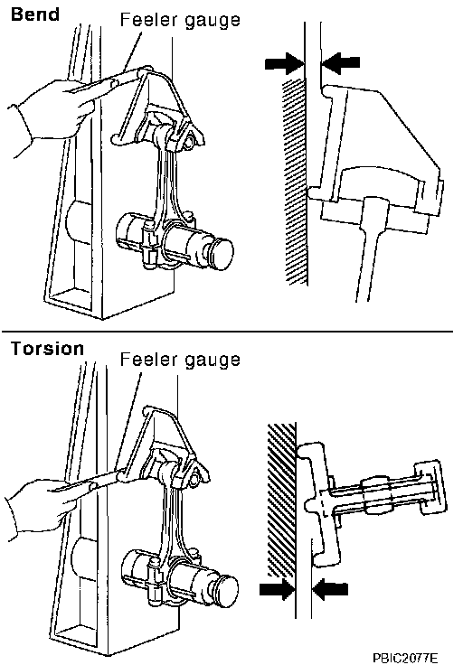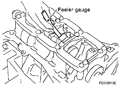 CONNECTING ROD SIDE CLEARANCE^ Measure the side clearance between connecting rod and crankshaft arm with feeler gauge.