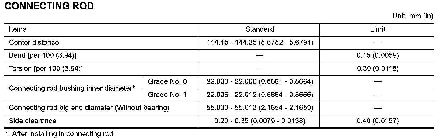 ^ If the measured value exceeds the limit, replace connecting rod, and measure again. If it still exceeds the limit, replace crankshaft also.