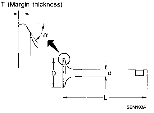 ^ If it exceeds the limit, replace valve and/or valve guide. When valve guide must be replaced, refer to EM-135, "VALVE GUIDE REPLACEMENT".