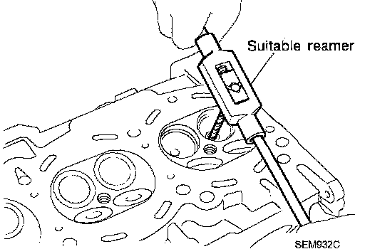 3. Using valve guide reamer (commercial service tool), ream cylinder head valve guide hole.