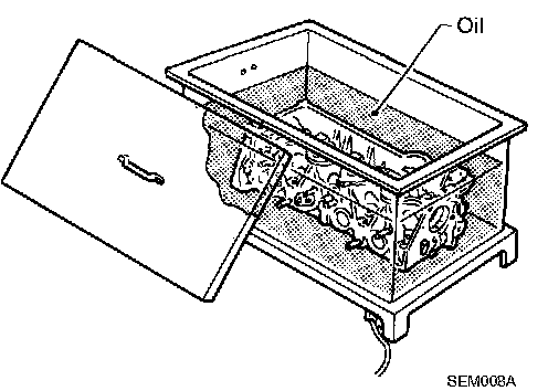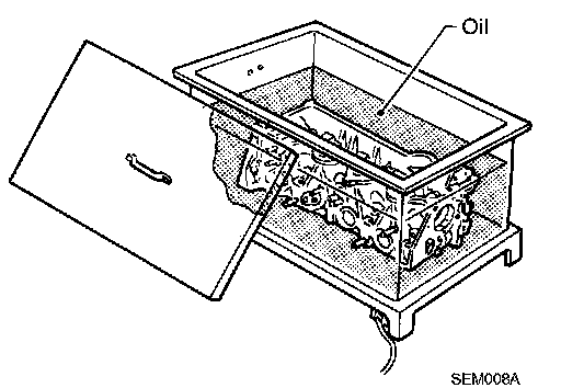 3. Heat cylinder head to 110 to 130°C (230 to 266°F) by soaking in heated oil.