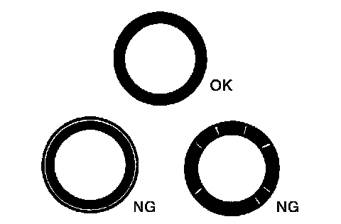 ^ If not, grind to adjust valve fitting and check again. If the contacting surface still has NG conditions even after the re-check, replace valve seat.