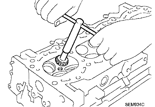 1. To remove valve guide, heat cylinder head to 110 to 130°C (230 to 266°F) by soaking in heated oil.