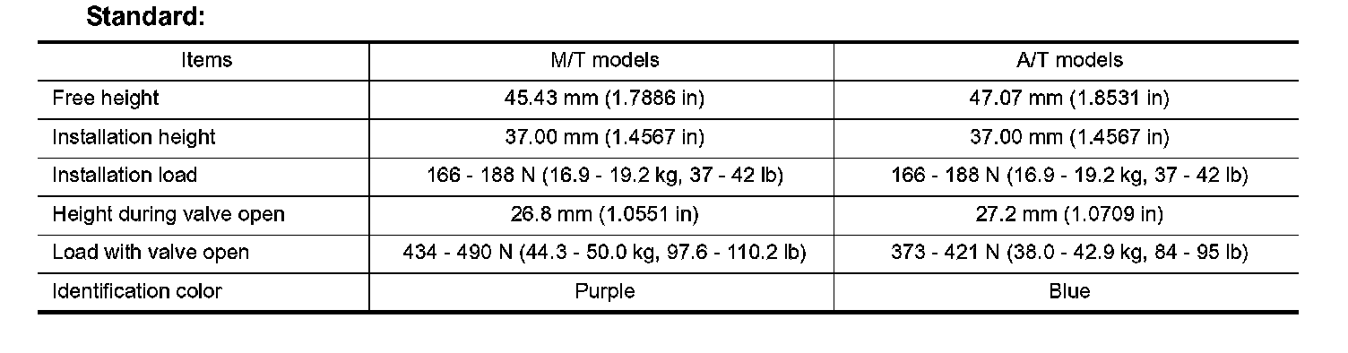 ^ If the installation load or load with valve open is out of the standard, replace valve spring.