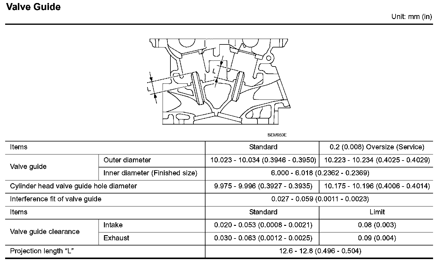 Valve Guide: Specifications