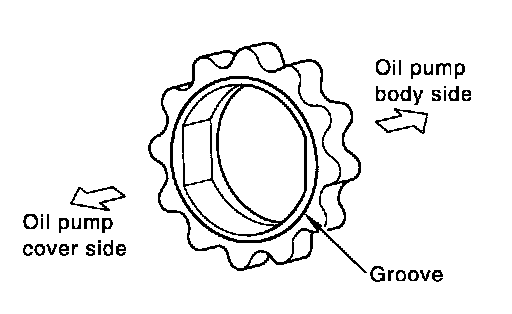 ^ Install inner rotor with the groove faced to oil pump cover side.