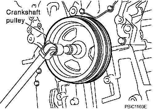 c. Tighten crankshaft pulley bolt.