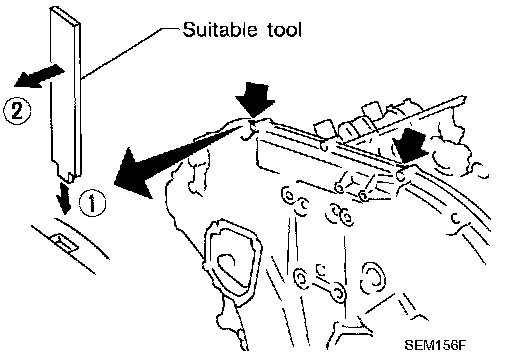 ^ Use seal cutter [SST: KV10111100 (J37228)] to cut liquid gasket for removal.