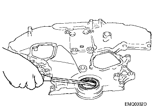 24. Remove front oil seal from front timing chain case using suitable tool.