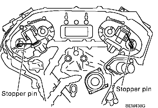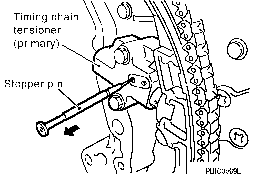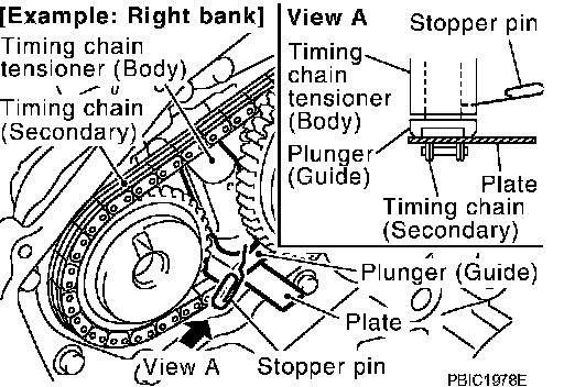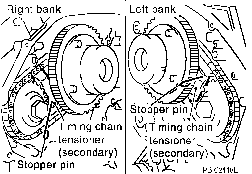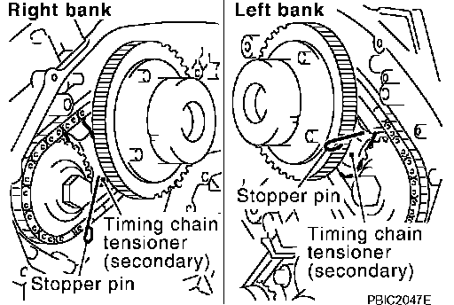 a. Attach suitable stopper pin to the right and left timing chain tensioners (secondary).