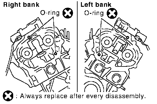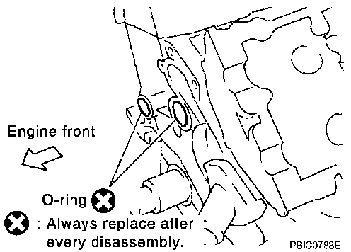 c. Install new collared O-rings in front timing chain case oil hole (left and right sides).