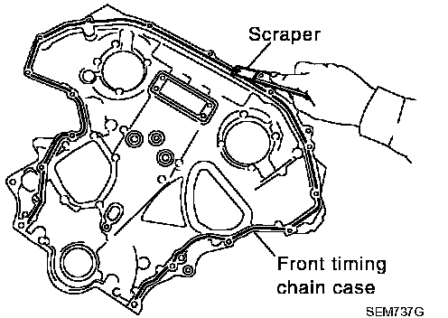 CAUTION: Be careful not to damage front timing chain case.