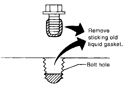 ^ Remove old liquid gasket from bolt hole and thread.